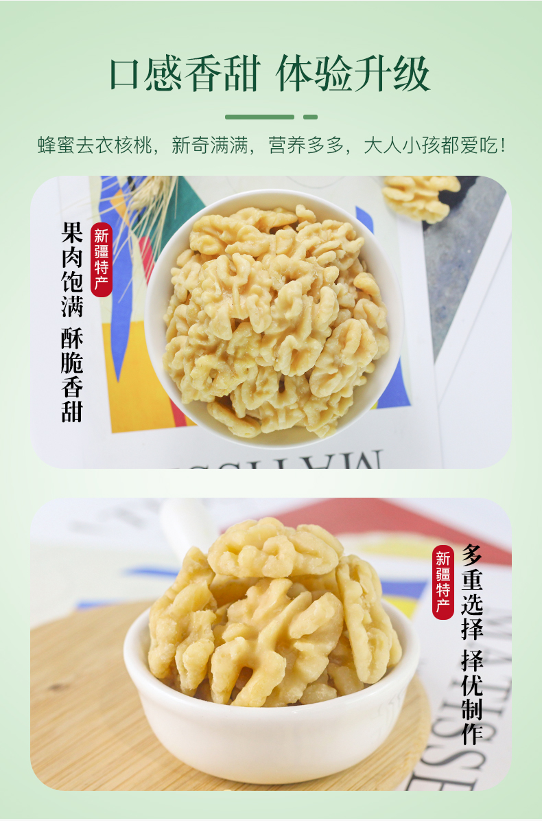 金勺新疆每日核桃兒去衣去皮蜂蜜核桃仁兒童孕婦零食核桃堅果核桃仁