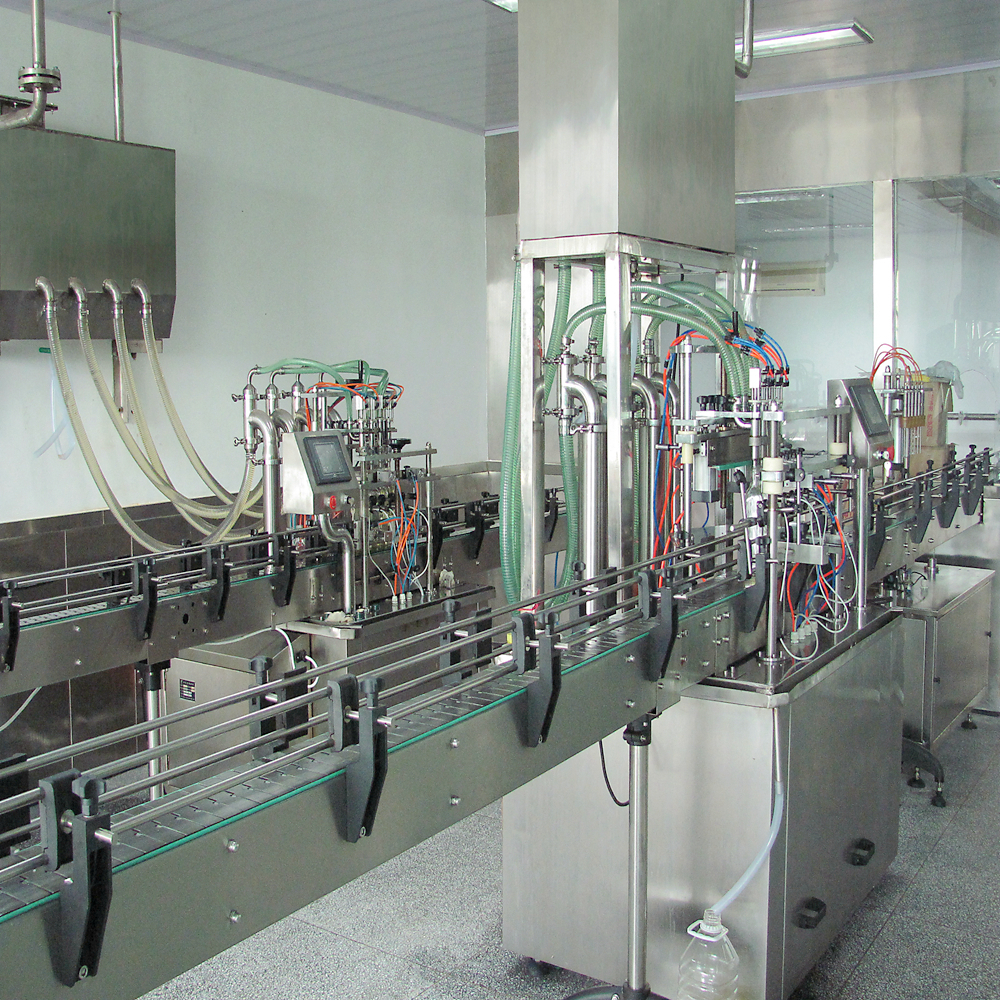 整條灌裝線包括:高位油箱(材料PE)、安全過濾器、恒壓箱、全自動伺服灌裝機、輸送帶、玻璃瓶扎蓋機、空氣壓縮機、空氣過濾器和管道閥門。